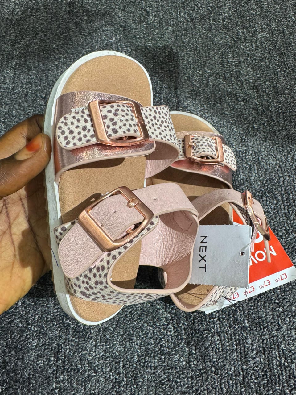 These stylish Next sandals in a lovely pink and brown colour combination are designed for girls aged 2–3 years, offering both comfort and durability for little feet. With a Birkenstock-style design, they provide a secure fit while remaining lightweight and easy to wear.